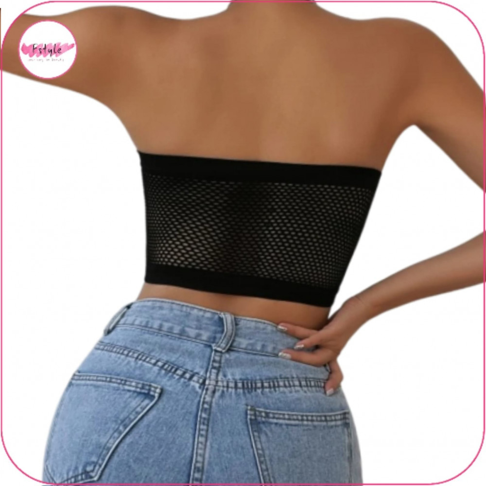 حمالة صدر ضاغطة بدون حمالات , بتصميم شبكي من الخلف متنفس ذات لون موحد اسود ،مصممة بضغط وشد الصدر , مريح الملمس بدون حشوات , قطعة مميزة.