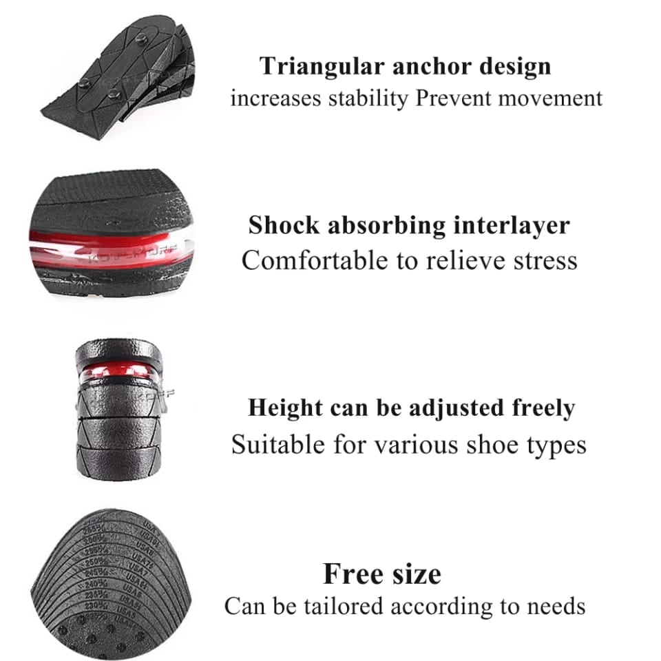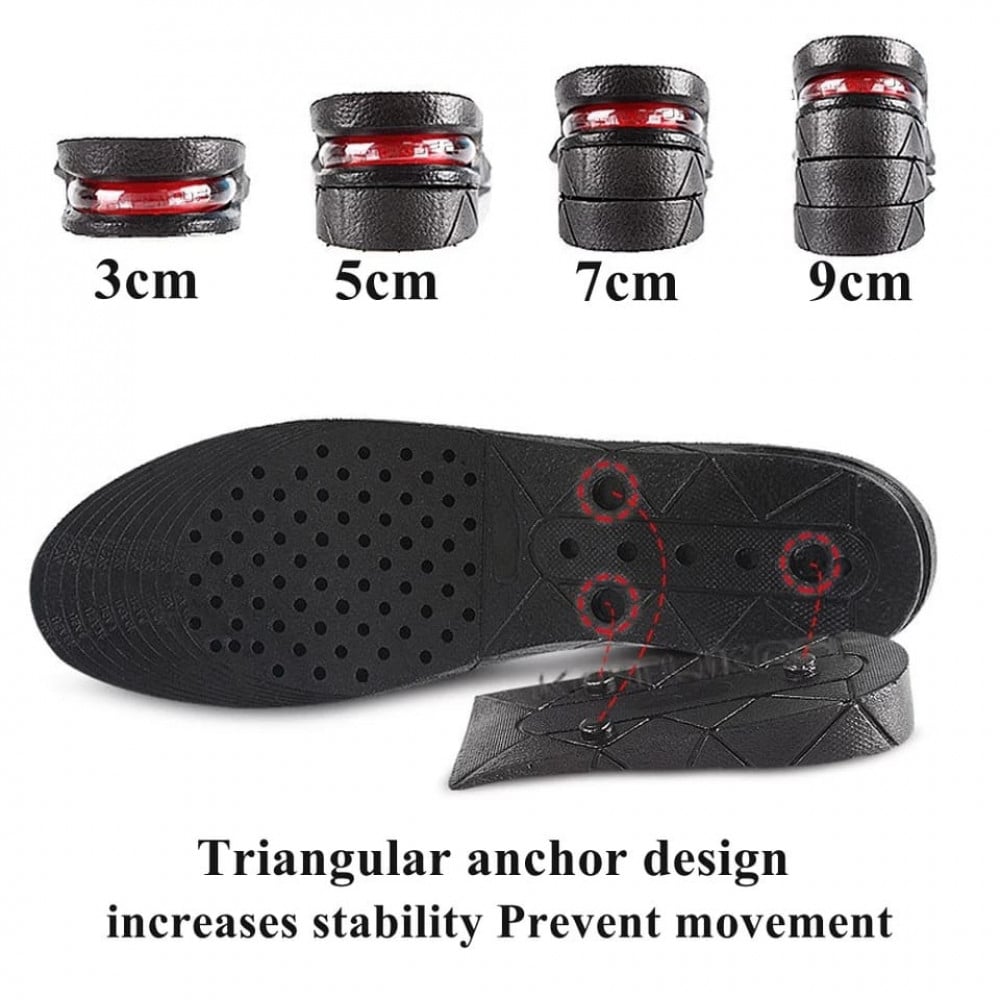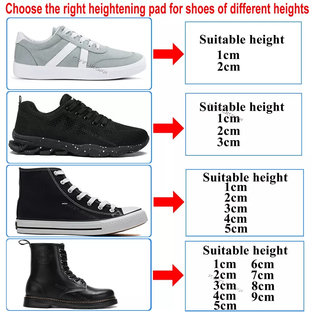 الآن تمتعي بزيادة طول 9 سانتي براحة وثقة بدون الحاجة لمعانة ارتداء الحذاء ذو الكعب العلي والمرهق ,, غير مرئي يمكنك ارتداءه في أي وقت وفي أي مكان ,, 9 سنتيمتر ايفا داخلية غير مرئي لزيادة الطول مع قابلية التعديل والتحكم لزيادة الطول أو التقليل منه مع دعم الظهر و وسادة قدم مريحة ومتنفسه .