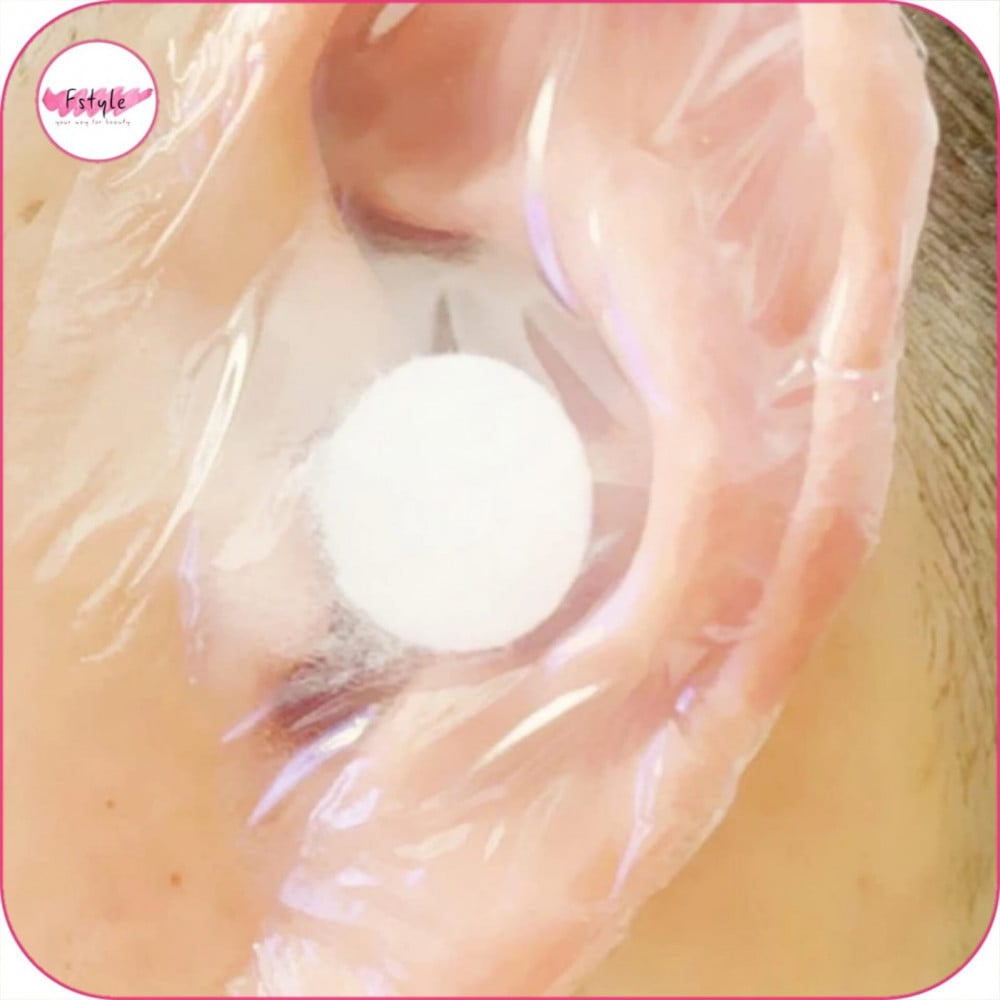 مجموعة من أغطية الأذن مقاومة للماء عند الاستحمام للأطفال والبالغين ملصقات للاستعمال مرة واحدة يمكن استخدامها ايضا عند ممارسة الألعاب المائية