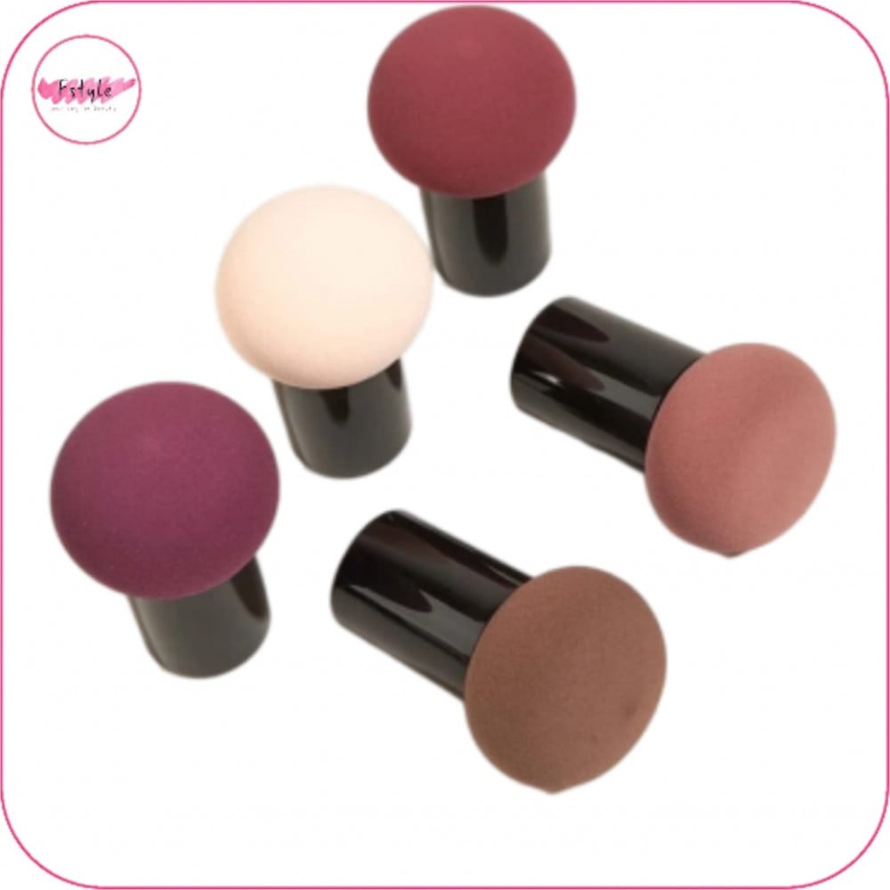 مجموعة اسفنج المكياج مكون من 5 قطع بشكل رأس الفطر جاف للاستخدام المزدوج خاصة لإزالة مستحضرات التجميل.