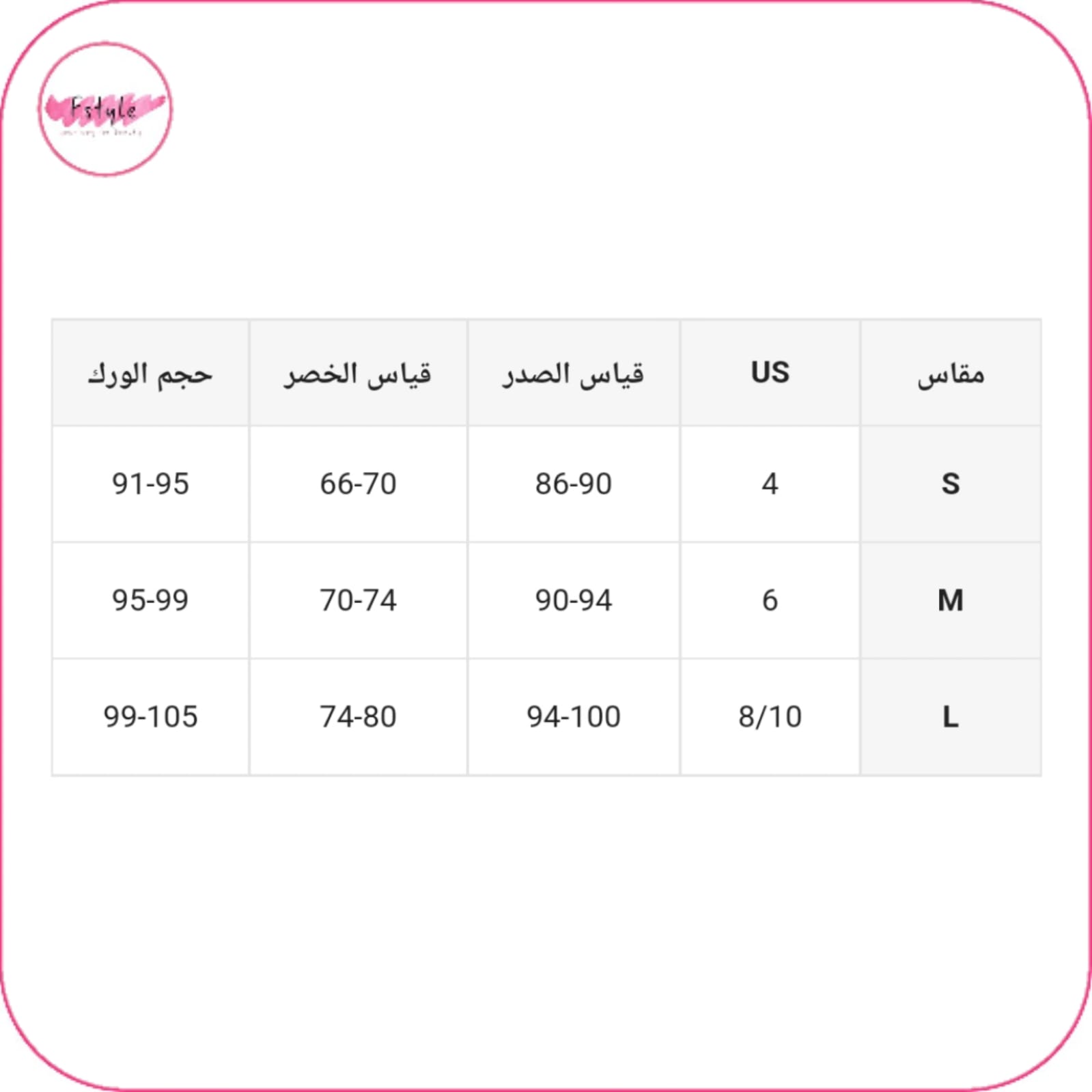 ننصحك عزيزتي بإتباع جدول المقاسات المرفق بالأسفل لضمان اختيار المقاس الصحيح